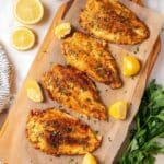 - Garnish and serve: Remove the tilapia from the air fryer and top with fresh lemon wedges and finely chopped parsley for a bright, fresh finish.