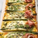 - Serve: Slice the frittata between asparagus rows and garnish with additional fresh herbs, parmesan, and prosciutto or other optional toppings. Serve warm or at room temperature for best flavor.