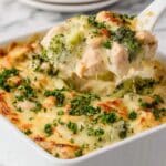 This Baked Chicken Alfredo recipe combines tender rotisserie chicken, fresh broccoli, and pasta in a creamy homemade Alfredo sauce made with Greek yogurt, Parmesan, and mozzarella. Baked until bubbly and golden, this comforting casserole is perfect for weeknight dinners or meal prepping.