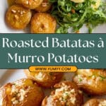 Batatas à Murro is a traditional Portuguese recipe featuring tender waxy potatoes that are roasted whole, then gently smashed to absorb savory garlic and olive oil, creating a flavorful and rustic side dish perfect for any meal.