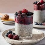 - Serve and garnish: Before enjoying, optionally top your chia pudding with additional fresh mixed berries and a drizzle of honey or maple syrup for extra sweetness and texture.