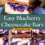 Delicious homemade Blueberry Cheesecake Bars featuring a buttery shortbread crust, creamy cheesecake filling, and a sweet blueberry jam swirl. Perfect for dessert or special occasions.