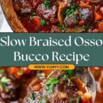 Osso Bucco is a classic Italian braised beef shank dish, slow-cooked until the meat is tender and flavorful. This recipe uses a rich blend of garlic, onion, carrots, white wine, tomatoes, and beef stock to create a hearty, comforting meal that is perfect for a cozy dinner. Traditionally served with gremolata and polenta, it offers a velvety texture that melts off the bone.