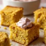 This Brown Butter Cornbread with Cranberry Butter Recipe freezes wonderfully. I slice it before freezing, wrap individual pieces tightly in plastic wrap, then place them in a zip-top bag. When I want some, I thaw a slice overnight in the fridge and warm it gently the next day. It’s just as delicious as fresh!