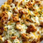 This Cajun Chicken Loaded Fries recipe combines crispy steak fries baked to perfection and topped with tender, spicy Cajun-seasoned chicken, melted Monterey Jack and sharp cheddar cheeses, and a creamy, tangy hot sauce drizzle. Garnished with fresh chives, these loaded fries make a satisfying and flavorful appetizer or casual meal that’s perfect for game day or family gatherings.