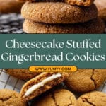 Pair these gingerbread cheesecake cookies with a hot cup of chai tea, spiced coffee, or a creamy latte. Sometimes I serve them alongside a small bowl of whipped cream or cinnamon-spiked applesauce for guests to dip in—it’s a surprise that goes down beautifully!