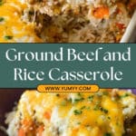 All the ingredients in this Cheesy Ground Beef Rice Casserole Recipe combine beautifully to create layers of flavor and texture. I love how basic pantry staples like rice and ground beef transform with creaminess from cheese and mushroom soup or gravy. When shopping, fresh carrots and good-quality cheese will really elevate the dish.