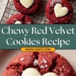 These Chewy Valentine’s Day Red Velvet Cookies combine rich cocoa flavor with a vibrant red hue and a tender, chewy texture. Finished with a delightful Reese’s white chocolate peanut butter heart on top, these cookies are perfect for a festive and romantic treat.