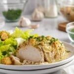 - Garnish and Serve: Garnish the baked chicken with fresh parsley and minced chives. Serve hot with a Caesar salad for a complete meal.