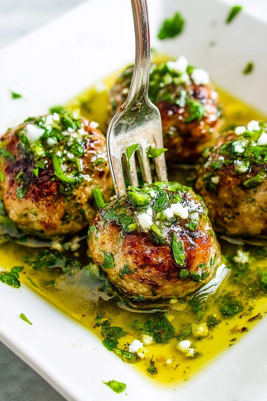 This Chimichurri Meatballs recipe combines juicy, flavorful pork and beef meatballs with a vibrant, zesty chimichurri sauce, topped with tangy crumbled feta. Perfect as an appetizer or main dish, these meatballs are pan-fried to golden perfection and complemented by a fresh herbaceous sauce that brings a wonderful balance of acidity and heat.