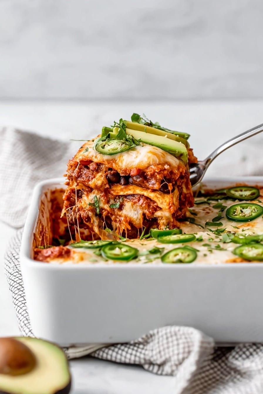 - Layer Sauce Properly: Adding sauce between layers keeps everything moist and prevents the tortillas from drying out during baking.