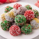 I’m a big fan of classic rainbow sprinkles because they add a cheerful pop of color and texture, but sometimes I roll truffles in crushed peppermint or toasted coconut for an extra festive touch. When I make these for guests, a light dusting of powdered sugar or a drizzle of melted white chocolate on top gives them a real show-stopper vibe.