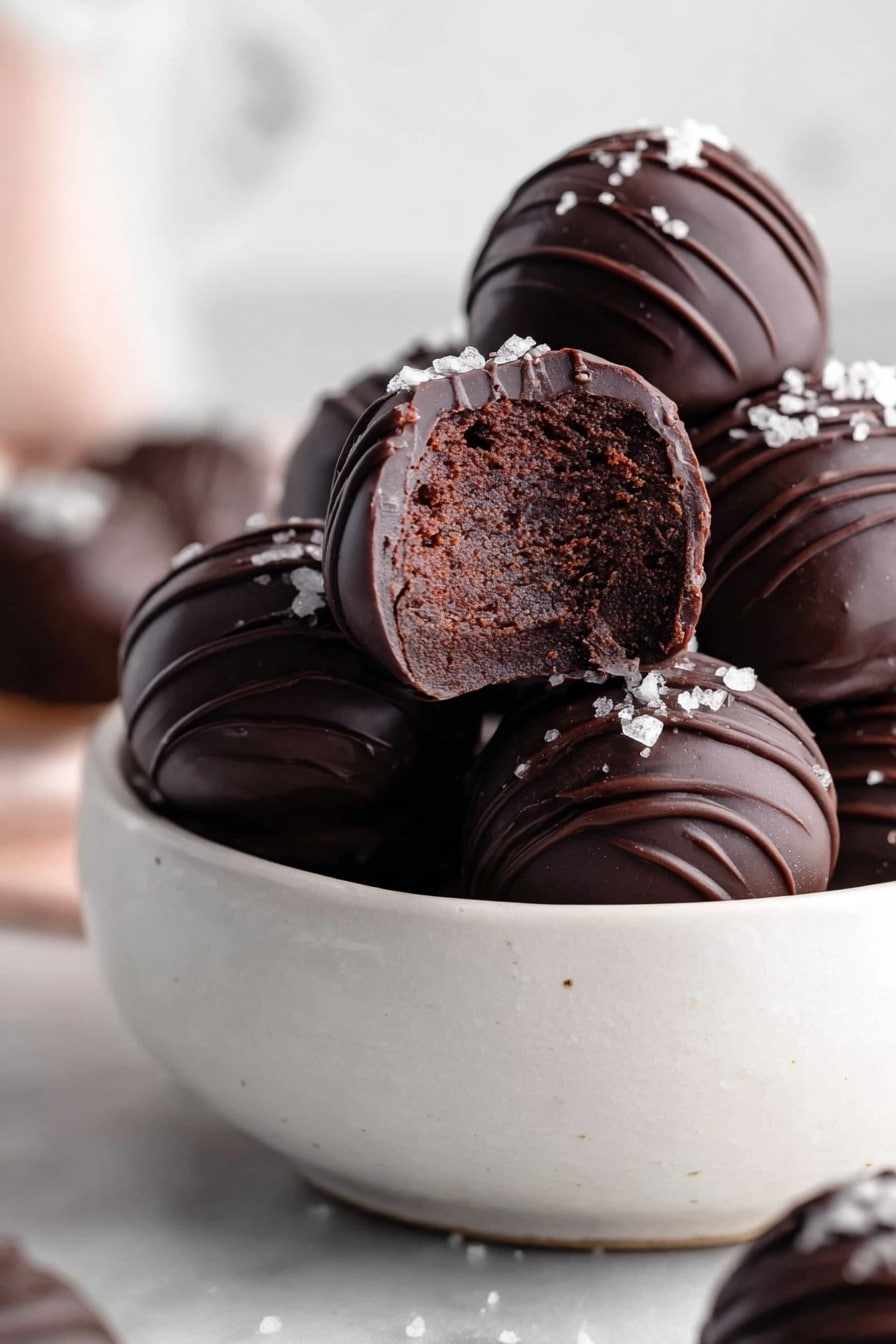 I love to finish these truffles with just a light sprinkle of flaky sea salt—it gives such a wonderful burst of flavor that cuts through the sweetness. Sometimes, I roll them lightly in cocoa powder or chopped toasted nuts for a rustic, elegant look when serving guests.