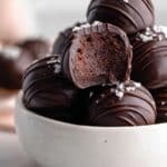 Decadent and irresistible Chocolate Cake Truffles made from moist homemade chocolate cake mixed with creamy chocolate cream cheese frosting, then dipped in rich dark chocolate and sprinkled with flaky sea salt. Perfect bite-sized treats for parties or dessert.