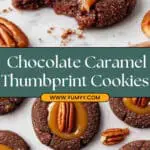 Delightfully rich and chocolatey Turtle Thumbprint Cookies feature a tender cocoa cookie base filled with decadent homemade caramel and topped with pecan halves. Perfect for holiday gifting or indulgent treats, these cookies combine the deep flavors of cocoa, buttery caramel, and crunchy pecans in every bite.