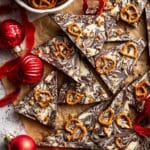 This Christmas Crack Candy recipe is a delightful holiday treat featuring a crispy saltine cracker base topped with a rich buttery caramel, melted semi-sweet chocolate, a swirl of white chocolate, and finished with crunchy pretzels and toffee bits. Easy to make and irresistibly addictive, it’s perfect for gifting or enjoying at festive gatherings.