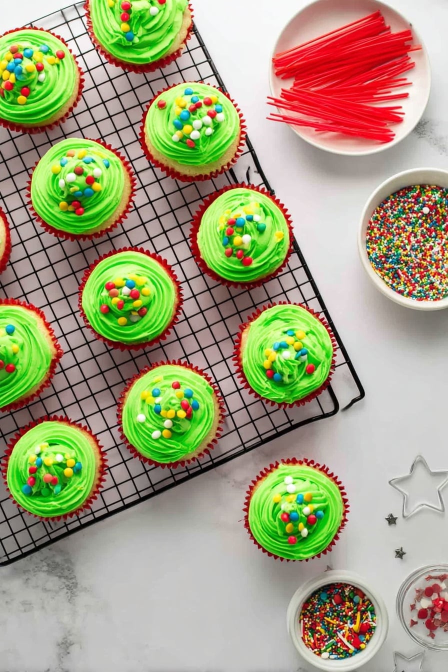 - Green Buttercream Frosting: The star of the show that transforms your cupcakes into Christmas trees.