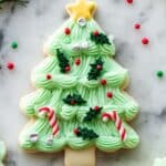Using gel food coloring is your best bet because it won’t change the frosting’s consistency, and you get bright, vibrant hues perfect for decorating those Christmas tree shapes.