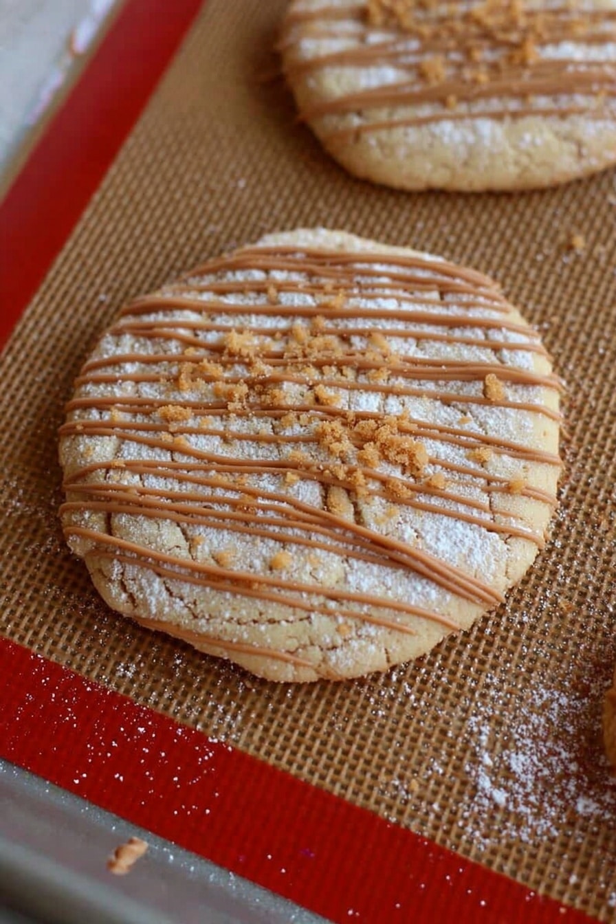 I love adding a light drizzle of warmed cookie butter on top of each cookie to amp up the flavor and make them look extra tempting. Sometimes I sprinkle crushed Biscoff cookie crumbs or even a pinch of flaky sea salt. The contrast is divine and rounds out all those buttery, caramel notes.