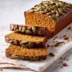 I love a simple spread of unsalted butter or cream cheese on a warm slice of this pumpkin bread — it brings out the flavors so nicely. If you want to get fancy, a drizzle of maple syrup or a sprinkle of powdered sugar can also be amazing finishes.