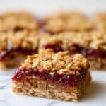 Make sure to press the oat base firmly into your pan before baking, and don’t rush cutting the bars before they’ve fully cooled. Using softened butter helps the crumb hold together better, too.