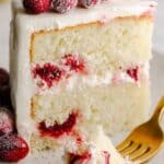 This Cranberry Christmas Cake is a festive and moist layered cake infused with fresh orange zest and juice, studded with tart cranberries, and topped with a luscious white chocolate buttercream. Perfect for holiday celebrations, this cake combines the bright flavors of citrus and berries with a rich, creamy frosting, finished with sugared cranberries for a sparkling, elegant touch.