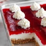 8. Serve: Optionally, garnish with a dollop of whipped topping and a fresh cranberry before serving. Cut into squares and enjoy!