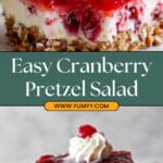 I personally love topping my Cranberry Pretzel Salad with a dollop of whipped cream and a single fresh or sugared cranberry right before serving — it adds a pop of color and just a bit of extra sweetness. Sometimes I’ll sprinkle chopped toasted pecans on top too if I want a bit more crunch.