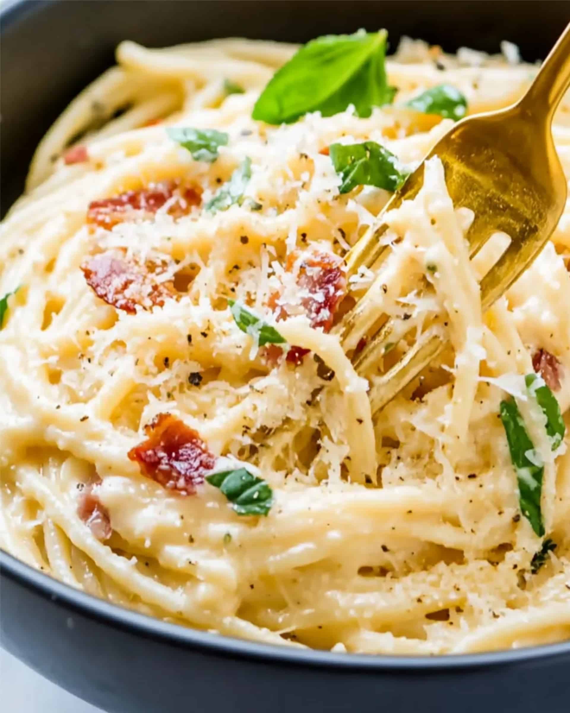 This Creamy Carbonara is a classic Italian pasta dish that’s rich, flavorful, and easy to make. Tender spaghetti is tossed with crispy pancetta, a creamy egg and Parmesan sauce, and fresh basil for a simple yet satisfying meal.