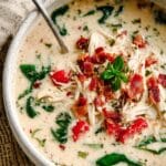 This creamy Italian chicken soup is a comforting and flavorful dish perfect for any season. Made with tender chicken breasts, savory broth, and a blend of dairy-free cream cheese, coconut milk, and nutritional yeast, this soup offers a rich texture and Italian herb-infused taste. Enhanced with sautéed onions, garlic, fresh spinach, and garnished with crispy bacon and fresh tomatoes, it’s a satisfying meal that can be easily cooked in a crockpot, stovetop, or Instant Pot.