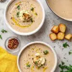 This creamy roasted cauliflower soup is a comforting and flavorful dish perfect for any season. Roasting the cauliflower and onions enhances their natural sweetness, while a blend of warm spices adds depth to the soup. Finished with butter and garnished with red chili flakes, parsley, and optional croutons, this recipe is easy to make and ideal as a starter or a light meal.