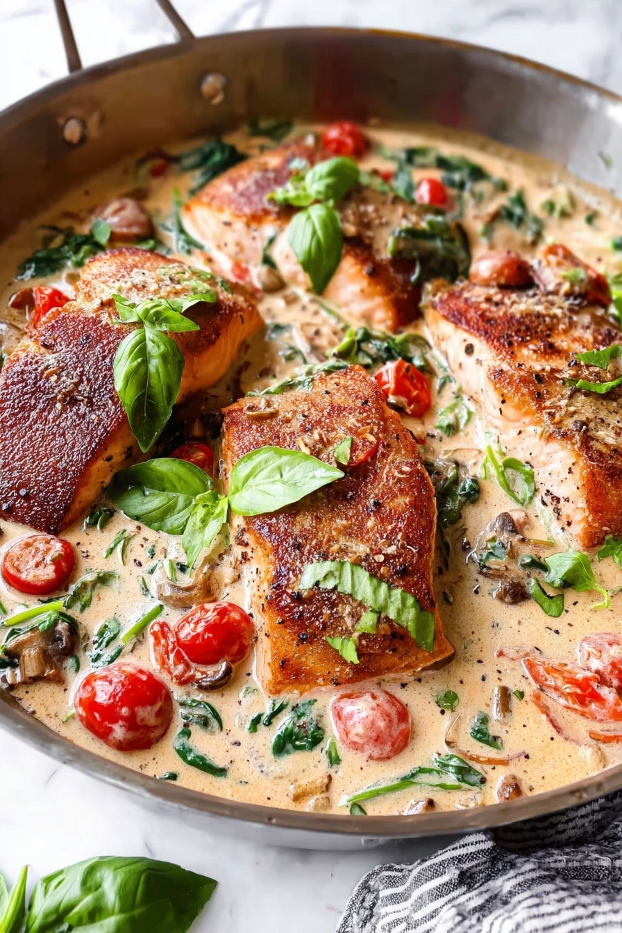 This Creamy Tuscan Salmon Recipe has become one of my go-to dishes when I want something quick yet fancy enough to impress without stress. The way the creamy sauce melds with juicy salmon and bright tomatoes is seriously addictive. I love how approachable it is, yet it always feels like a treat. I hope you enjoy making and sharing this recipe as much as I do — it’s perfect for weeknights, date nights, or anytime you want comfort food with a gourmet touch. Give it a try, and let me know your twists and favorite pairings!