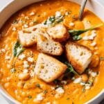 My family goes crazy for this soup alongside a simple green salad dressed with lemon vinaigrette or with warm, crusty bread if you’re skipping the croutons. Grilled cheese sandwiches pair perfectly for an indulgent combo that’s just as comforting as it sounds.