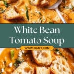 This creamy white bean tomato soup combines tender cannellini beans, rich tomato flavors, and fresh spinach in a comforting blend, topped with homemade crispy oregano garlic croutons and Parmesan cheese for an extra burst of flavor. Perfect for a hearty lunch or dinner, this soup is both nourishing and satisfying.