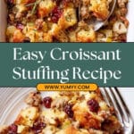 This Croissant Stuffing recipe is a decadent twist on traditional stuffing, featuring buttery croissant pieces combined with savory pork sausage, aromatic herbs, tart apples, toasted pecans, and dried cranberries. Toasted croissants are soaked in a flavorful broth and baked until golden and bubbling, offering a rich, moist, and textured side dish perfect for holiday meals or special occasions.