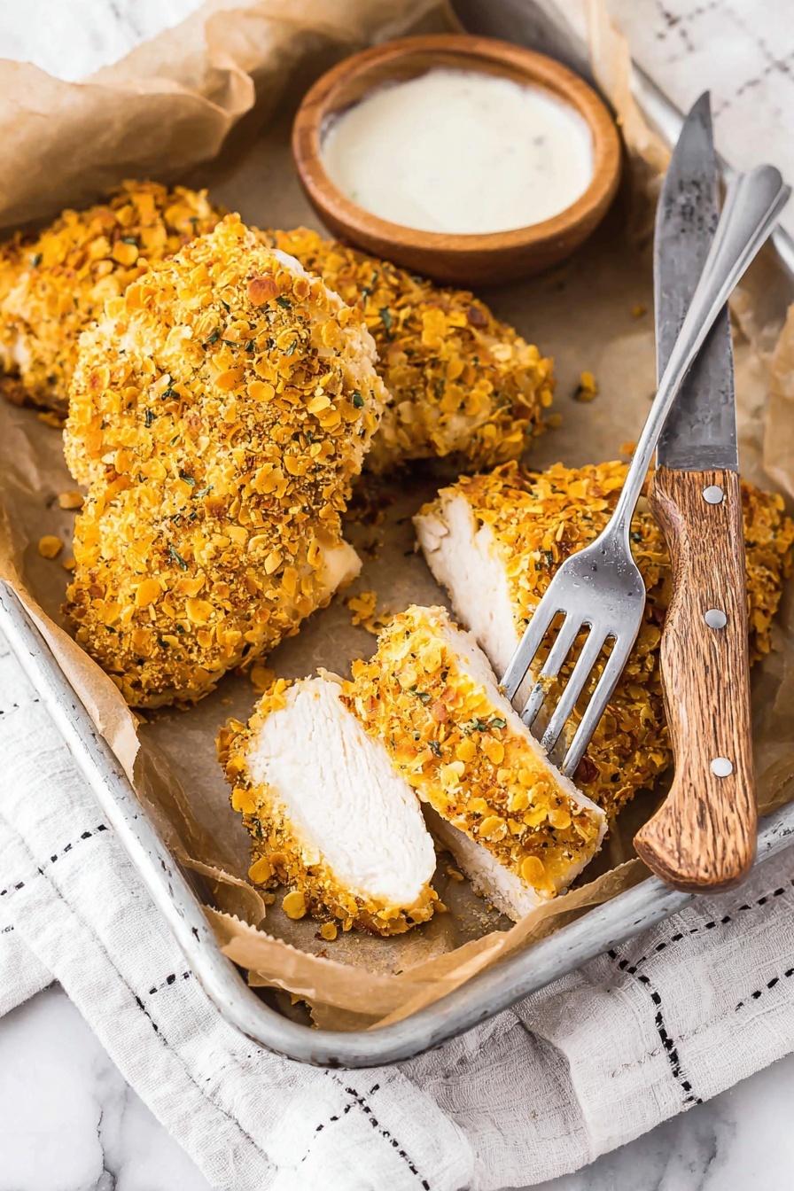 For special occasions, I like arranging the Crunchy Cornflake Chicken on a platter with lemon wedges and fresh herbs scattered around. Serving it in cute mini cast iron skillets or a rustic wooden board adds charm and makes the meal feel more festive without extra effort.