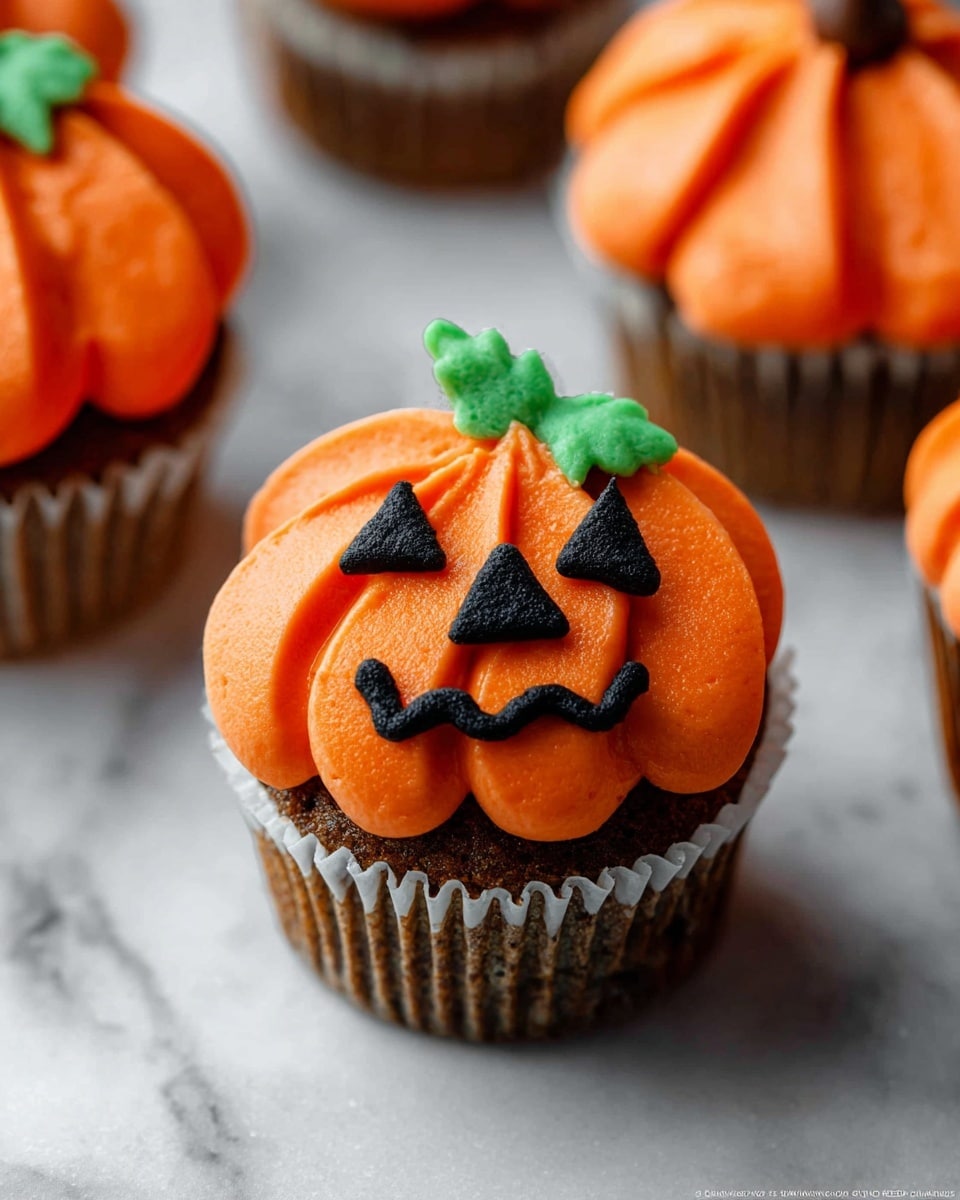 Pair these cupcakes with a classic hot apple cider or a fun Halloween punch. For savory balance, I like serving some roasted pumpkin seeds or mini cheese boards alongside—it rounds out the party perfectly.