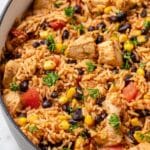 This Chicken Burrito Bowl Recipe is a quick and flavorful meal combining seasoned chicken, black beans, corn, and seasoned rice, topped with fresh and creamy garnishes like avocado, sour cream, and cheddar cheese. It’s a delicious, one-pot dish perfect for busy weeknights or meal prepping.