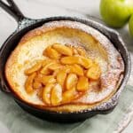 This recipe uses sugar in the apple topping and confectioners’ sugar for garnish to keep the pancake itself light and not overly sweet. If you like it sweeter throughout, you can add a tablespoon of sugar to the batter, but I find it unnecessary with the apple topping doing the sweet work.