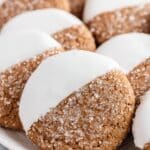 Delight in these classic Ginger Cookies dipped in smooth, white chocolate almond bark. Featuring a blend of warm spices like ginger, cinnamon, nutmeg, and allspice with rich molasses and brown sugar, these cookies are soft and flavorful. Coated in sparkling sanding sugar and partially dipped in creamy white chocolate, they make an irresistible treat perfect for any occasion.
