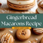 These Gingerbread Macarons combine classic French pastry finesse with festive gingerbread spices and flavors. Delicate almond meringue shells are infused with cinnamon, ginger, and cloves, then paired with a rich molasses buttercream for a perfect holiday treat. The optional white chocolate drizzle and gingerbread men sprinkles add a fun decorative touch, making these macarons an elegant and delicious dessert for the holidays or any special occasion.