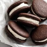 Delicious gluten free whoopie pies made with a blend of gluten free flours, cocoa powder, and a rich, creamy dairy-free filling. These soft, chocolatey treats are perfect for those avoiding gluten and dairy without sacrificing flavor or texture.
