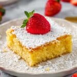 - Finish and serve: Remove the cake from the oven and allow it to cool completely. Once cooled, dust the top with additional powdered sugar. Cut into squares and serve.