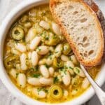 A simple and flavorful Green Olive Soup made with olives, white beans, fresh herbs, and vegetable stock, blended to a creamy texture and finished with a bright splash of lemon juice and olive oil. Perfectly comforting and easy to prepare, this soup pairs wonderfully with rustic bread.