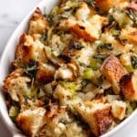 If I want to prep ahead, I bake the stuffing fully, then freeze in portion-sized containers. It thaws well overnight in the fridge and reheats beautifully in the oven with a foil tent. This freezer hack has saved me so many times during busy holidays.