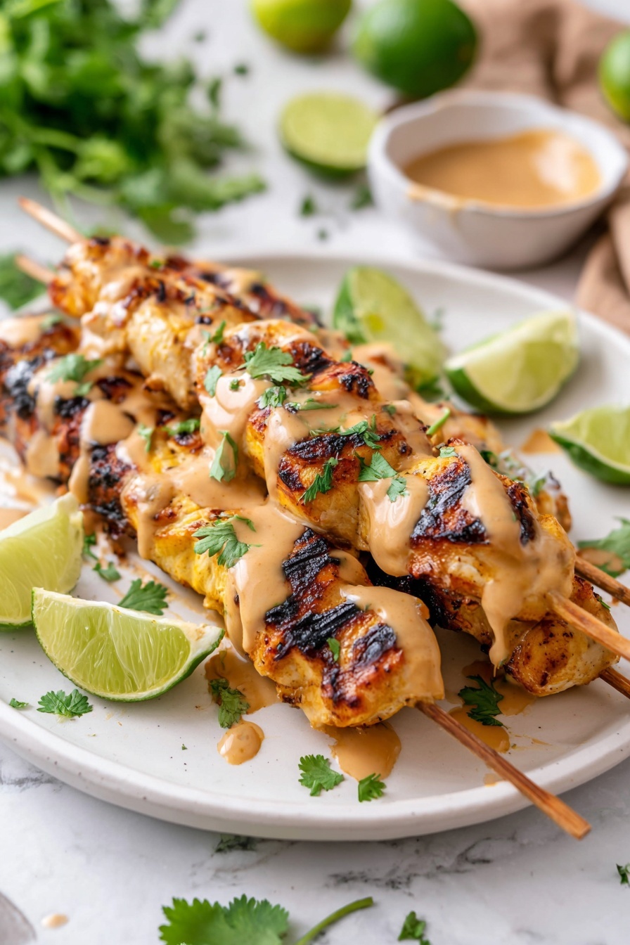 Once the chicken is cooked through and slightly charred, you can serve it drizzled with the peanut sauce or on the side for dipping. I love how the creamy heat of the peanut sauce melts into the smoky chicken—it’s just the perfect bite every time.
