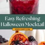 This Halloween Mocktail is a festive and flavorful non-alcoholic sangria perfect for spooky celebrations. Combining the rich flavors of non-alcoholic red wine or pomegranate/grape juice with a medley of fresh fruits, cinnamon sticks, and an optional touch of maple syrup, this refreshing drink is ideal for all ages. The fruit and spices are steeped to infuse the beverage with vibrant autumnal notes, finished with sparkling water or ginger ale for a light, bubbly twist.