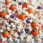 Store your Halloween White Chocolate Popcorn with M&Ms and Candy Recipe in an airtight container at room temperature. I’ve kept it fresh for up to a week without any loss of crunch, so it’s great for prepping in advance.