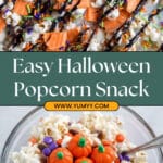 This Halloween Popcorn recipe combines crispy popcorn with creamy white chocolate and festive candy pieces to create a delicious and easy treat perfect for Halloween parties and celebrations. The sweet, crunchy popcorn clusters are coated in melted white chocolate and studded with colorful M&M’s and Halloween candy, with optional drizzles of colored chocolate and sprinkles for an extra festive look.