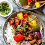 These Healthy Teriyaki Chicken Skewers feature tender, marinated chicken breast or thighs grilled to perfection with colorful bell peppers, red onion, and fresh pineapple. The homemade teriyaki sauce is a flavorful blend of low-sodium soy sauce, brown sugar, honey, garlic, and ginger, thickened with cornstarch for a delightful glaze. Perfect for a nutritious and satisfying meal, these skewers are easy to prepare and ideal for grilling season.